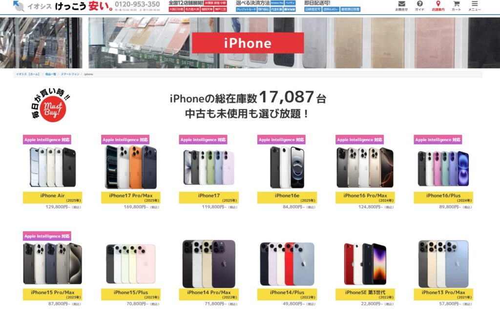 • Apple Trade In: 状態が悪い(バッテリー劣化・小傷)でも、一律価格で買い取るため、減額されたイオシス価格を上回ることがある。