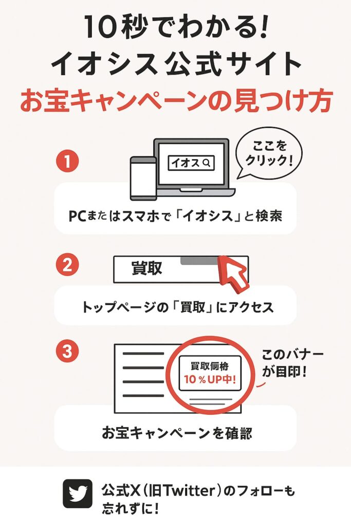 - ポイント1: 無駄な「クーポン」探しはやめて、公式サイトの**「買取キャンペーン」**を狙う。